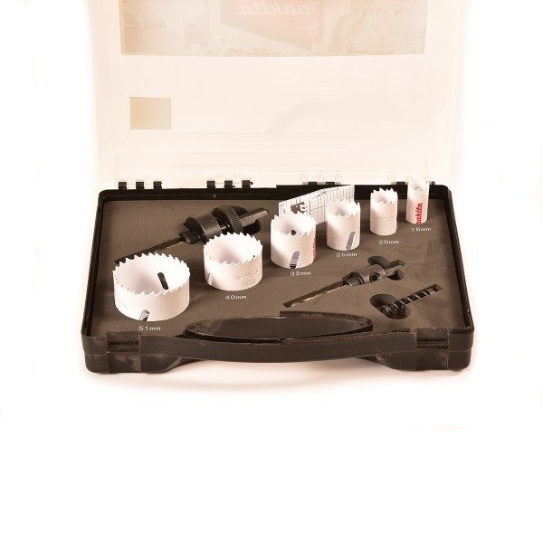 Set de sierras copas de la marca Makita para electricistas