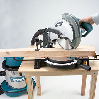 Se puede conectar fácilmente una aspiradora Makita en la parte trasera (incluye bolsa de polvo)