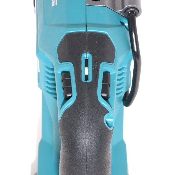 La velocidad de carrera se va incrementando a medida que se aumenta la presión sobre el gatillo interruptor, aparte esta sierra posee un cambio con 2 velocidades: